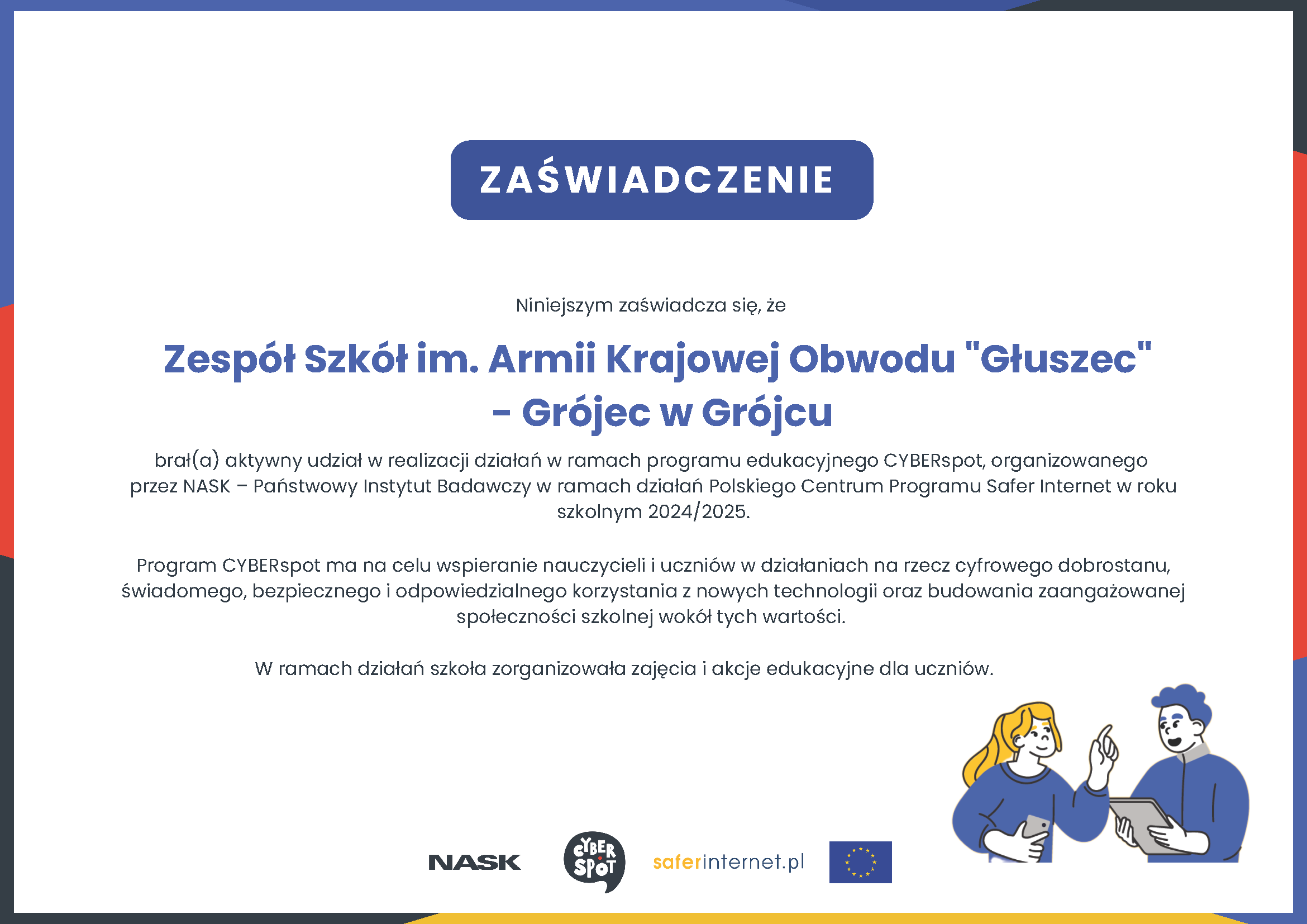 Dnia 12 września 2025 roku w Zespole Szkół w Grójcu im. Obwodu Głuszec Grójec odbyły się warsztaty w ramach międzynarodowego projektu „Dekolonizacja projektowania cyfrowego: w kierunku bezpiecznych i inkluzyjnych doświadczeń cyfrowych dla dzieci i młodzieży”.